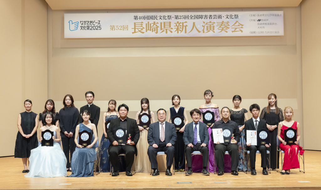10月5日(日)シーハットおおむら・さくらホールにて「第52回長崎県新人演奏会」が開催され、7月のオーディションで選ばれた11名の演奏家の中から、グランプリ、準グランプリ、オーディエンス賞が選ばれました。